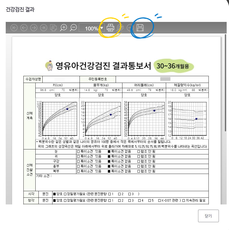 영유아 검진을 받은 후 병원에서 결과지를 프린트해서 주시긴 하지만, 분실하는 경우, 여러 곳에 제출해야 하는 경우 등 추가로 출력이 필요한 경우가 있다. 그래서 직접 인터넷으로 출력하는 법을 기록해보았다.